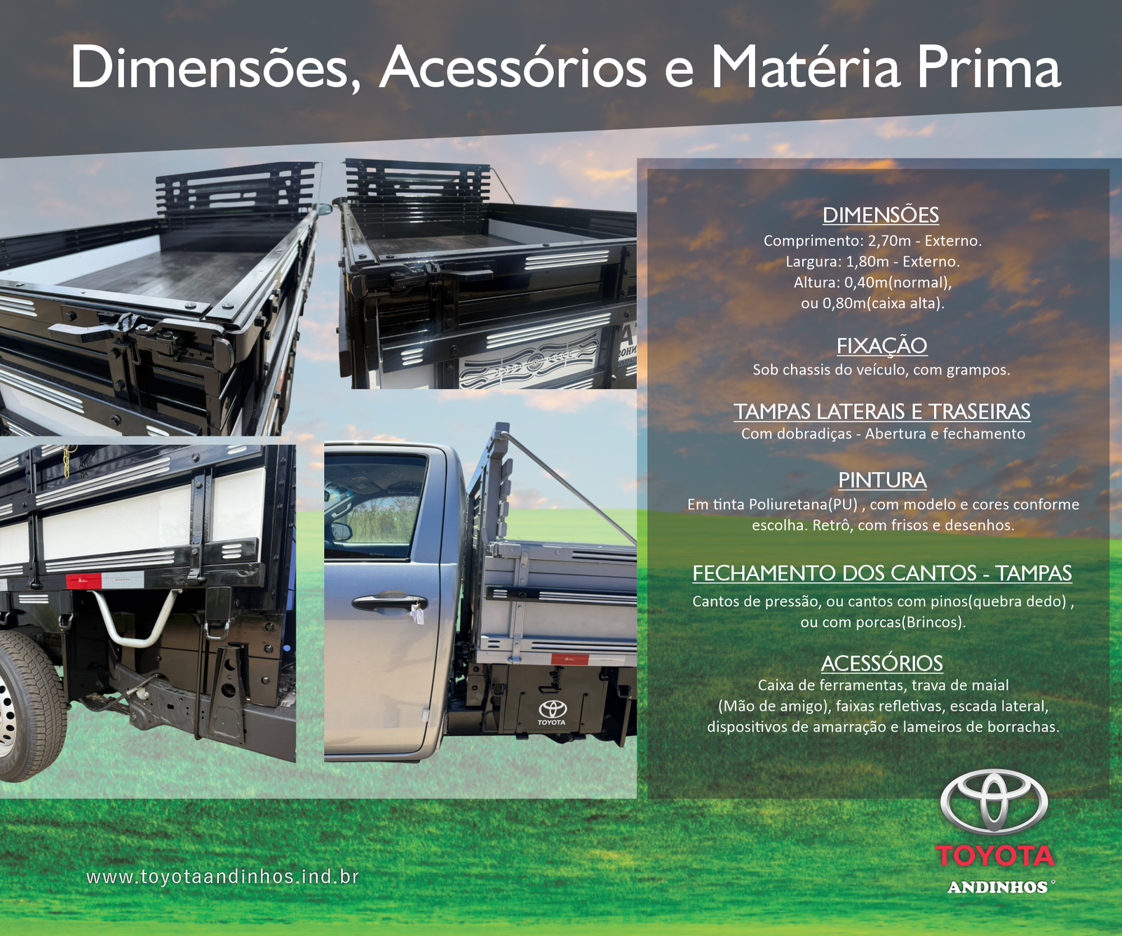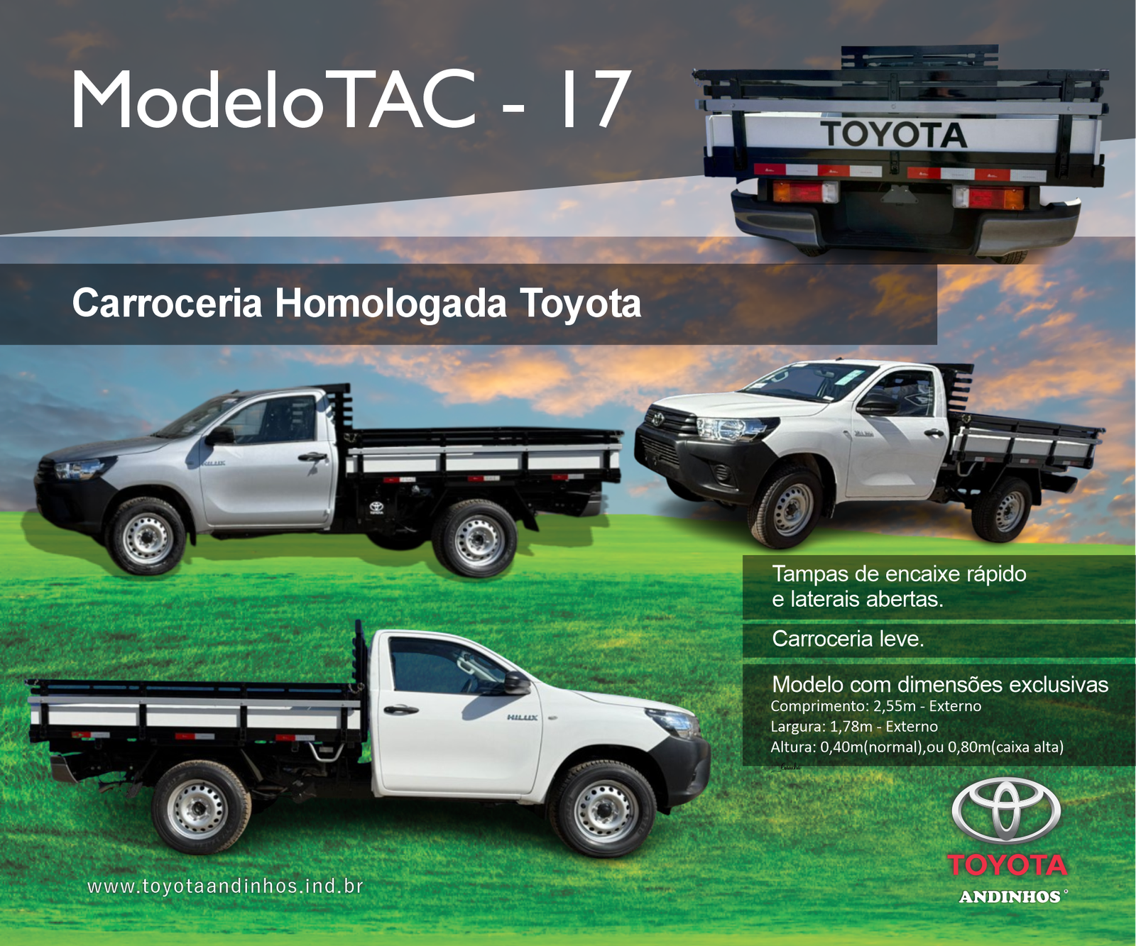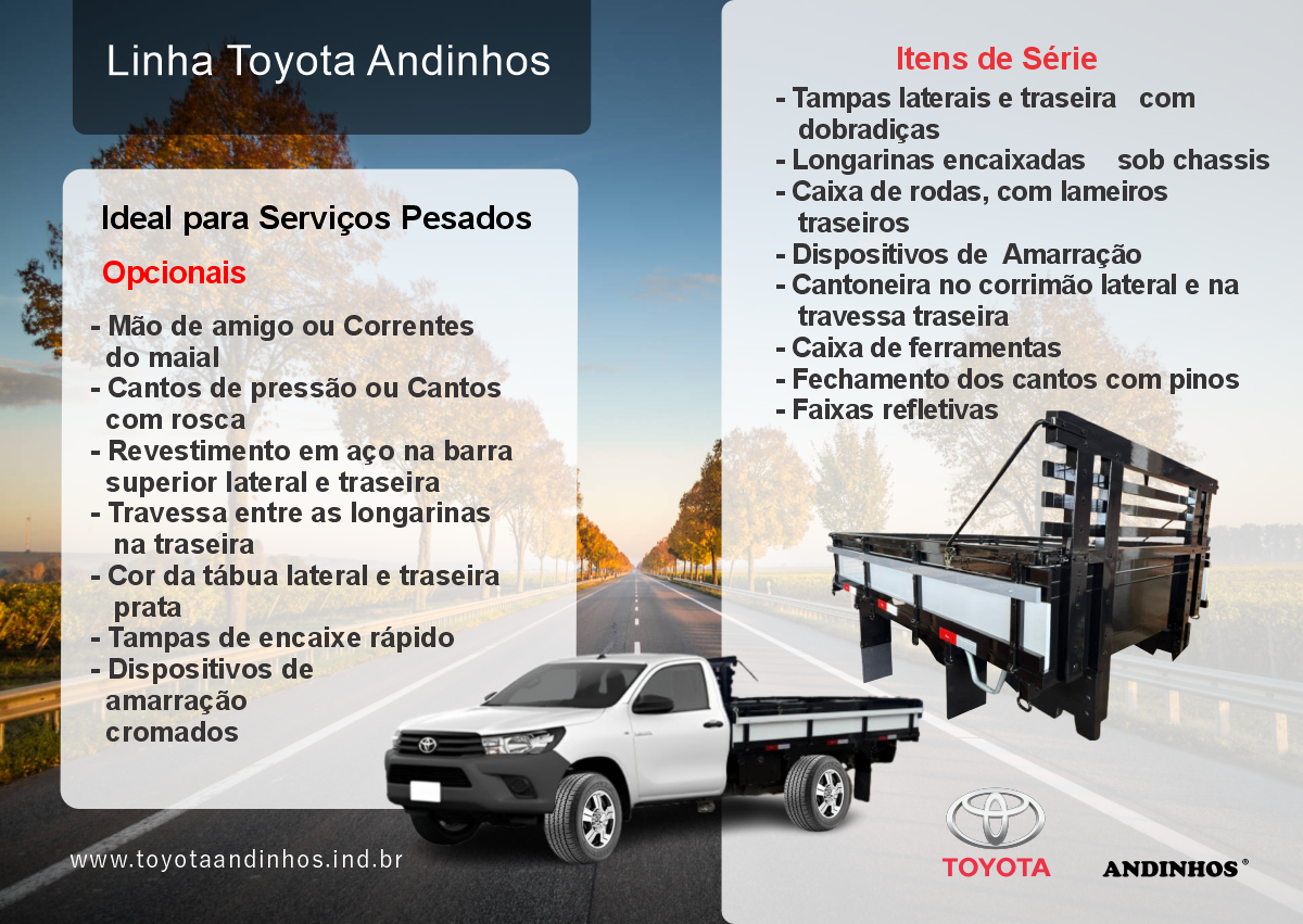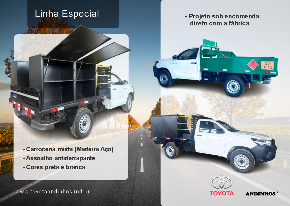 TOYOTA ANDINHOS, São as Hilux Carrocerias de madeira, fabricadas pela Andinho Implementos , sendo elas Homologadas de Fábrica pela TOYOTA.